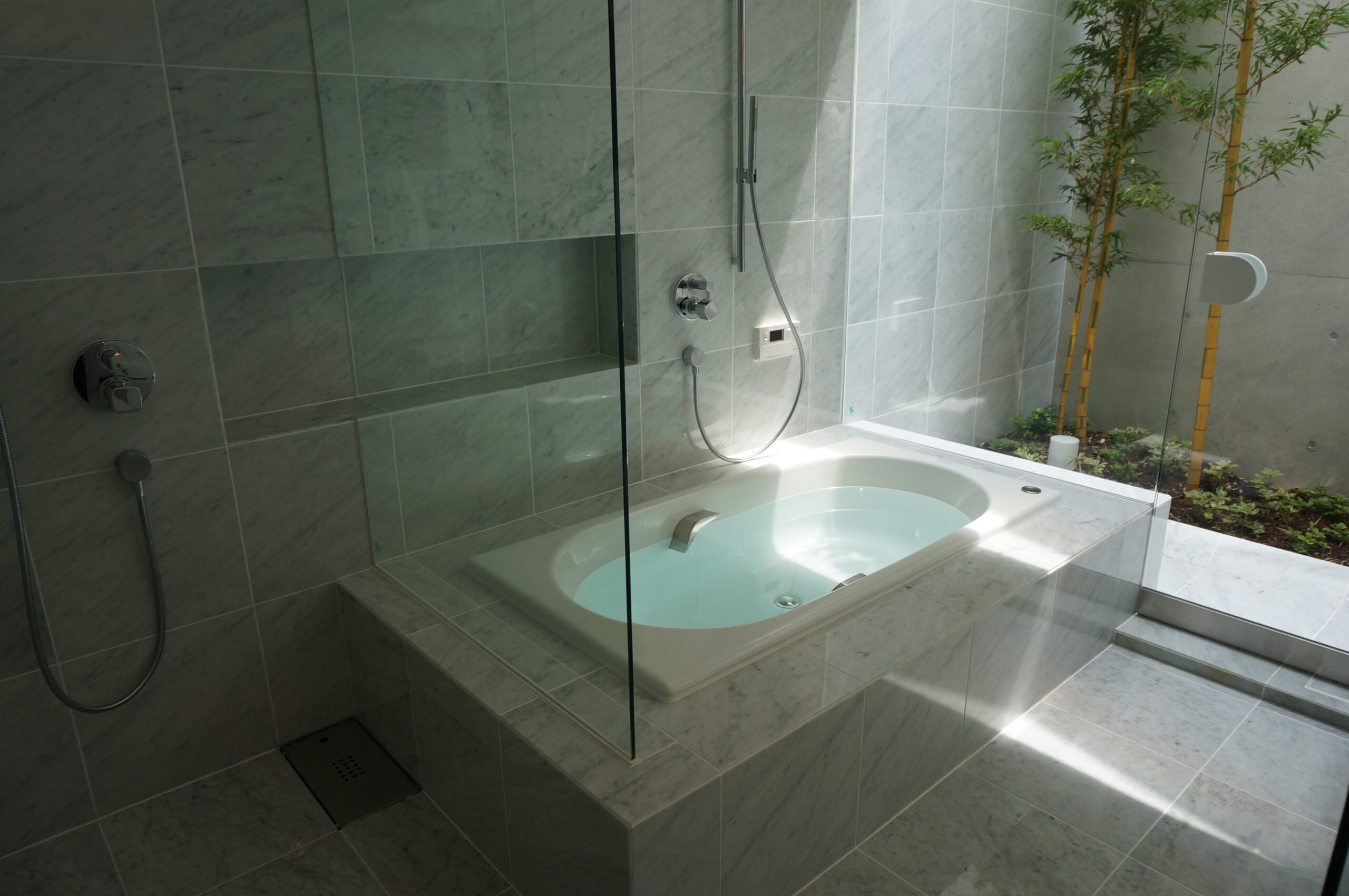 ・床・壁の仕上げ:タイルや天然石など素材を自由に選択。デザインの個性を反映できるポイントです。